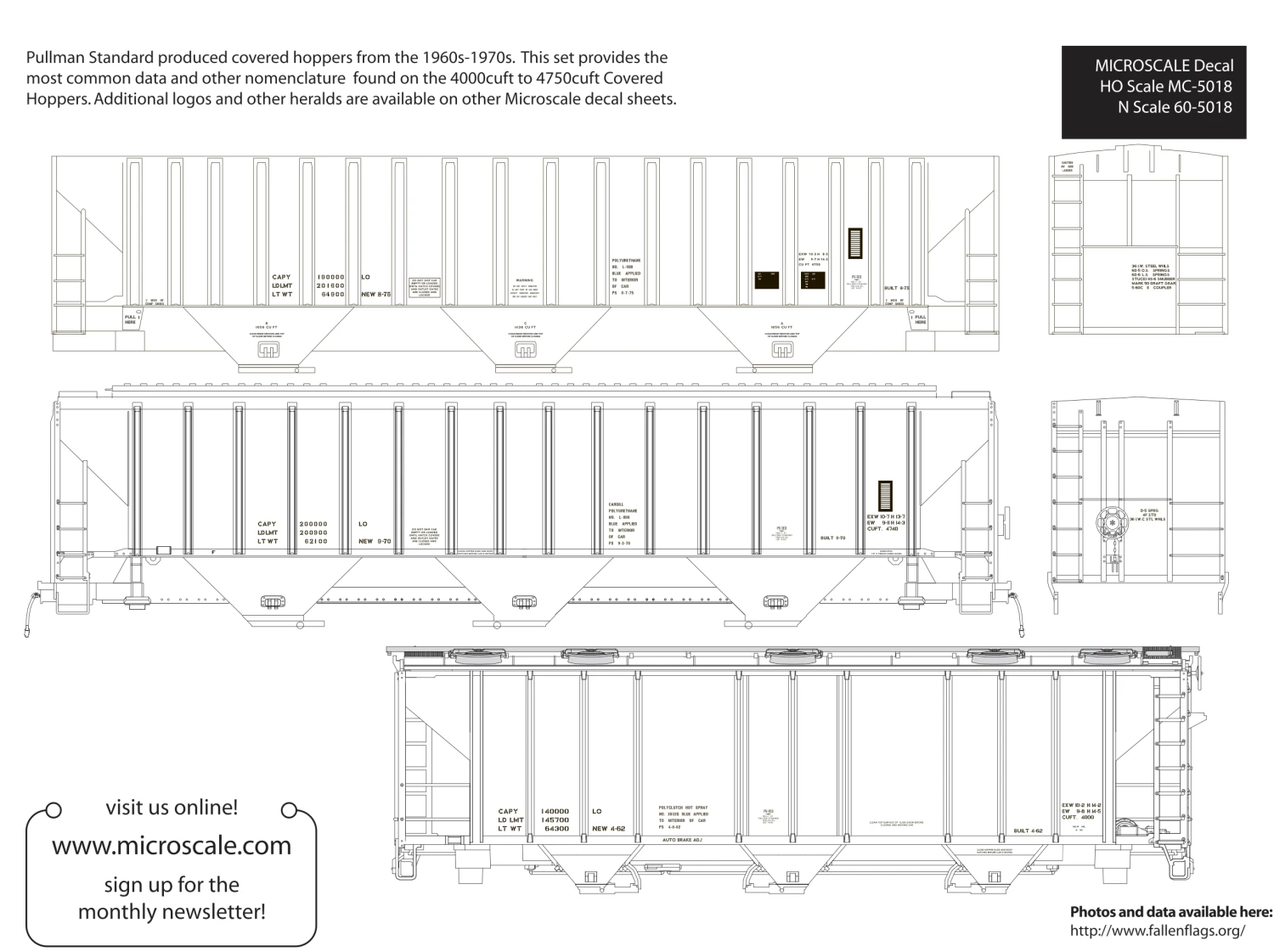 Microscale 5018 HO Scale White P-S 4750 Covered Hopper Data