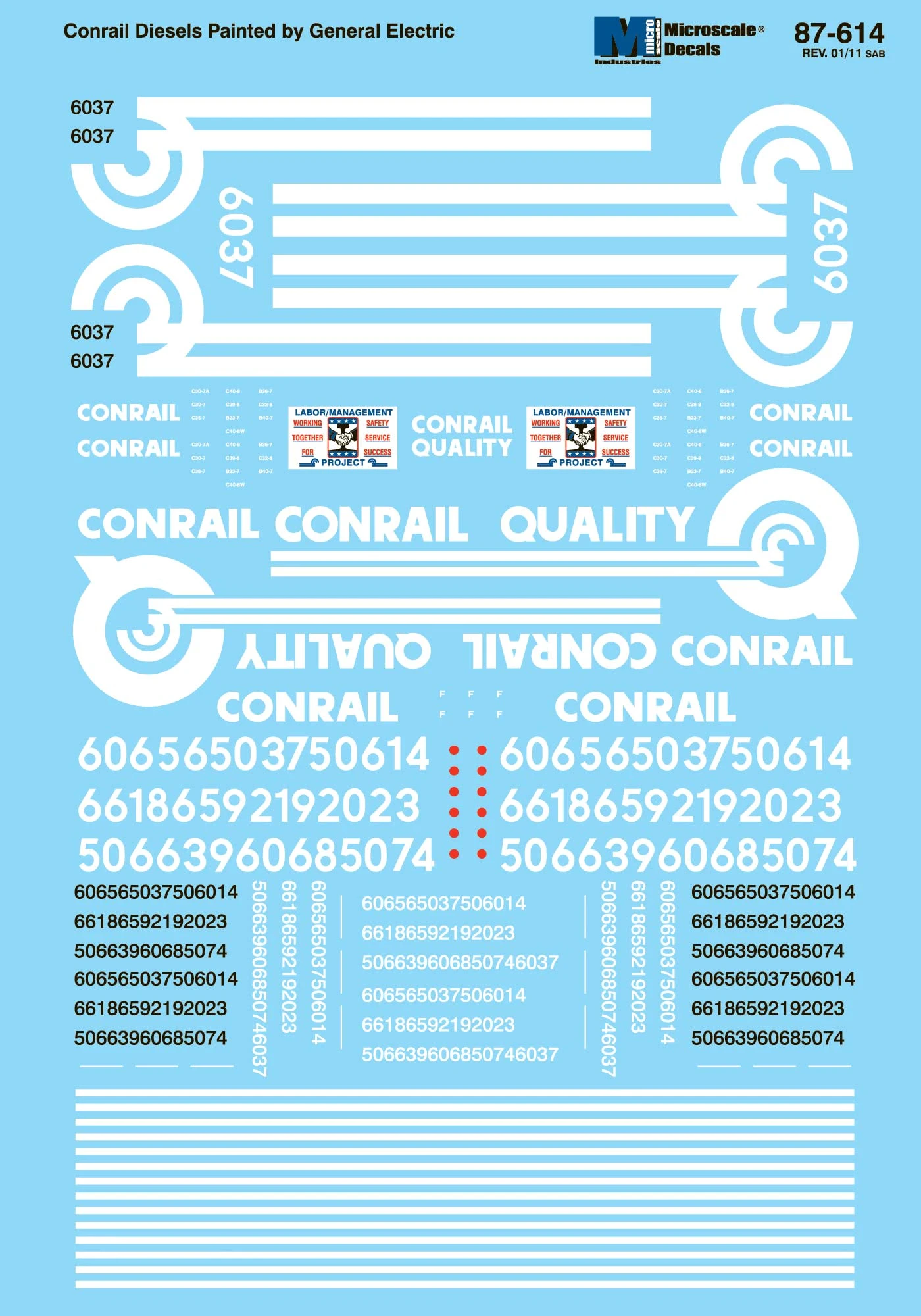 Microscale 87-614 HO Scale Conrail GE Diesel Labor Management Decals