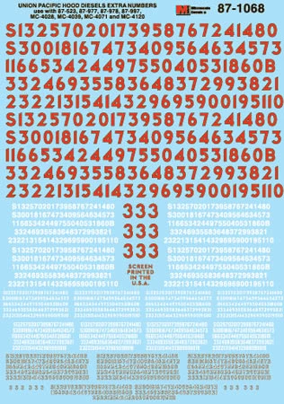 Microscale Decals 87-1068 HO Scale Union Pacific UP Diesels Extra Number Set