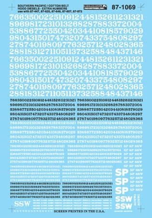 Microscale Decals 87-1069 HO Scale Southern Pacific SP Diesels Extra Number Set