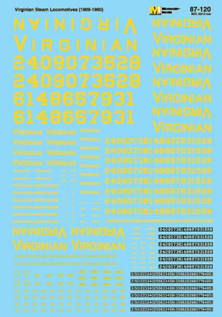 Microscale Decals 87-120 HO Scale Virginian Steam Locomotives