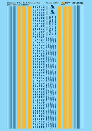 Microscale Decals 87-1398 HO Scale Chesapeake & Ohio C&O Passenger Car Stripes