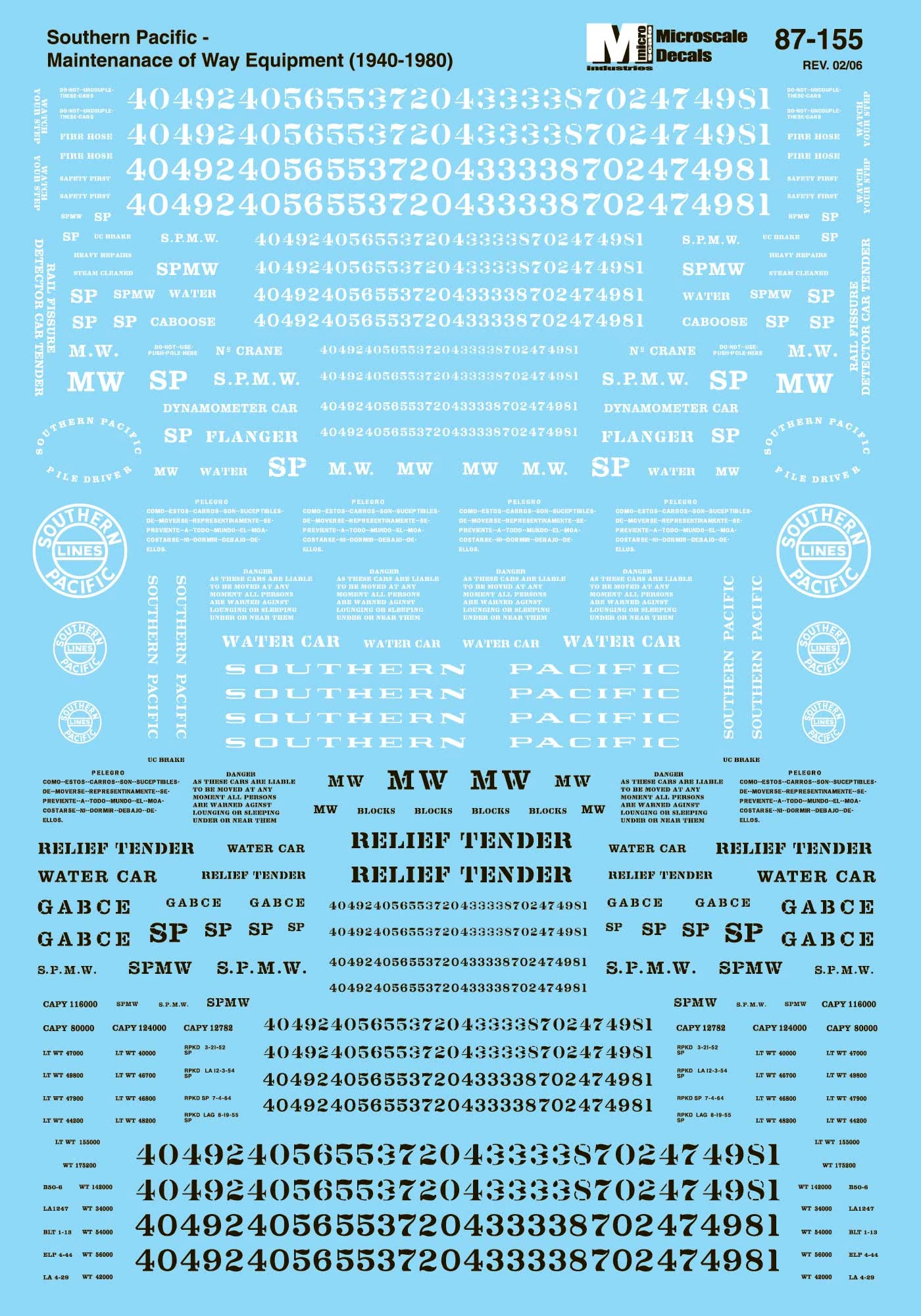 Microscale Decals 87-155 HO Scale Southern Pacific SP Maintenance of Way Equipment