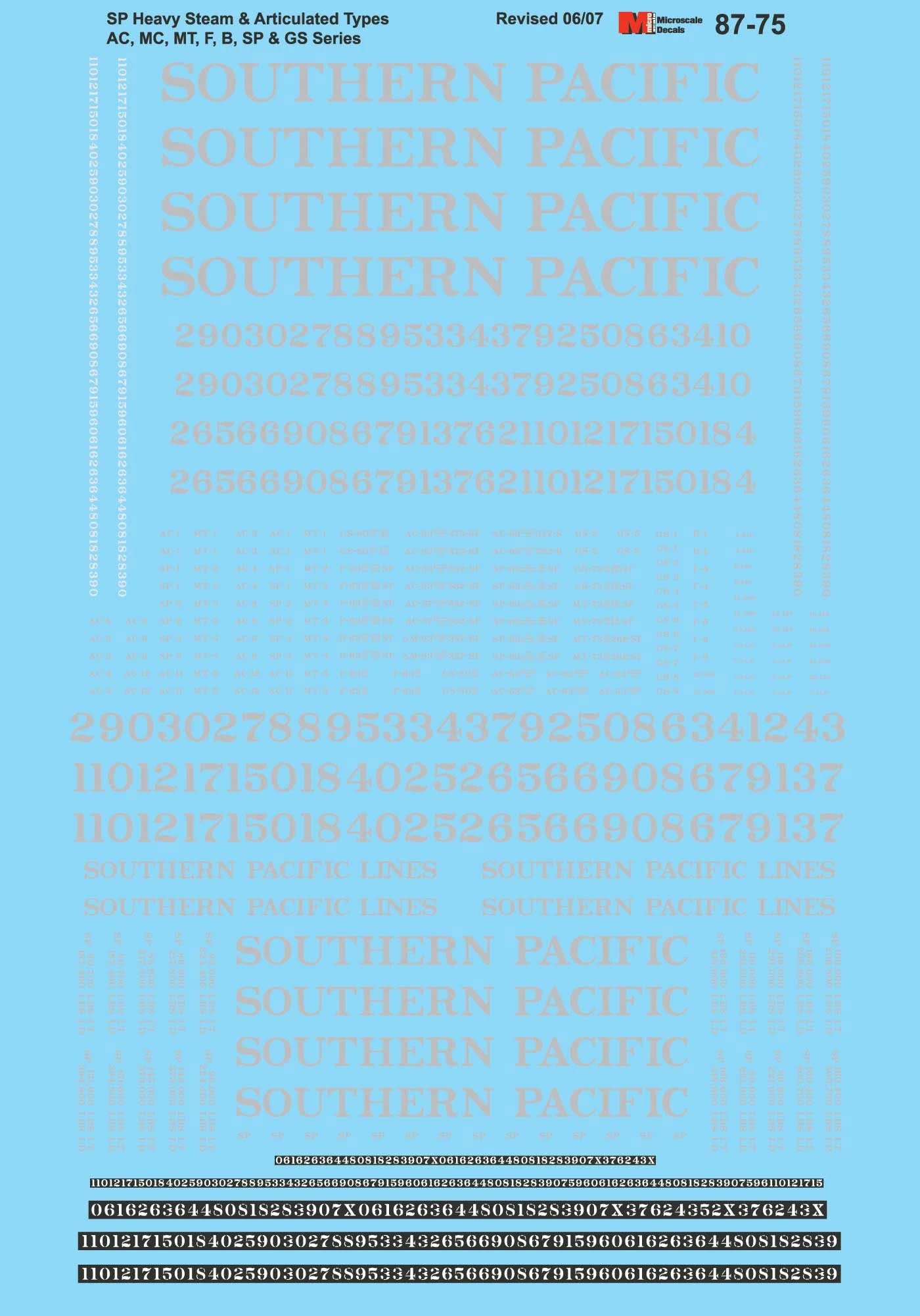 Microscale Decals 87-75 HO Scale Southern Pacific Heavy Steam Locomotives
