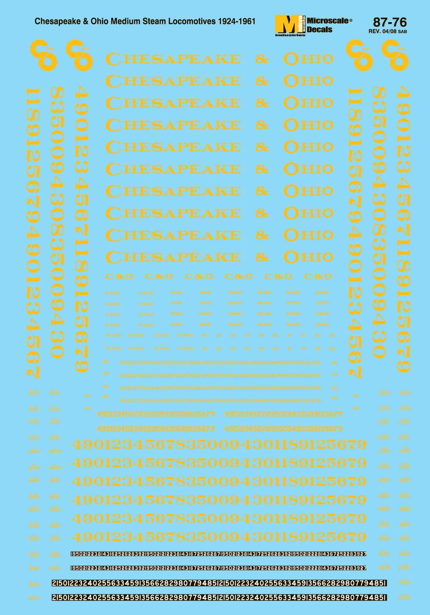 Microscale Decals 87-76 HO Scale Chesapeake & Ohio C&O Steam Locomotives