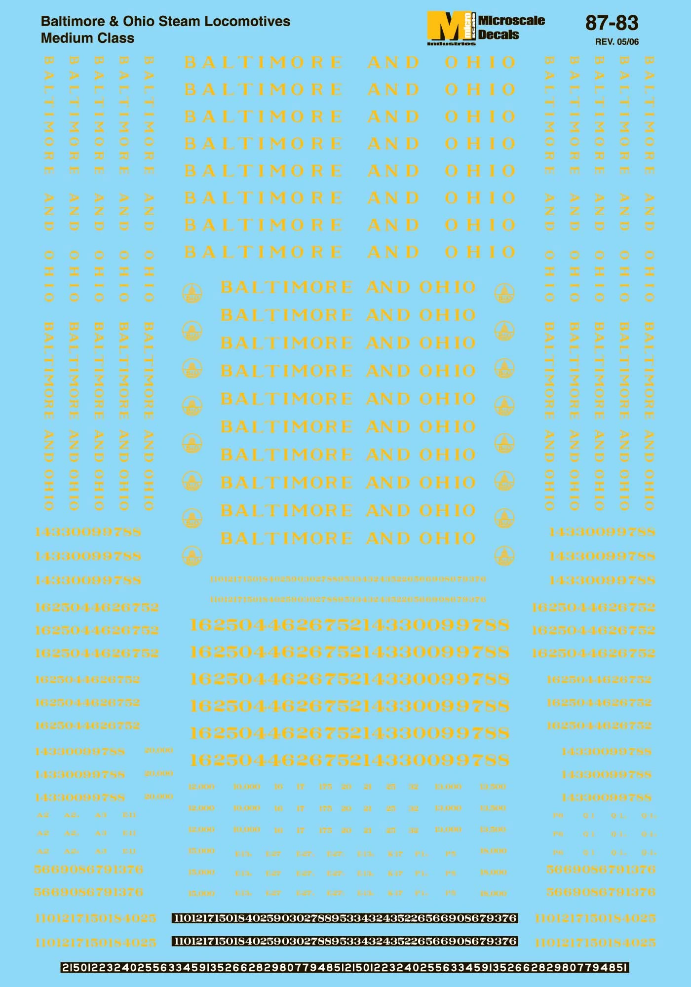 Microscale Decals 87-83 HO Scale Baltimore & Ohio B&O Steam Locomotives