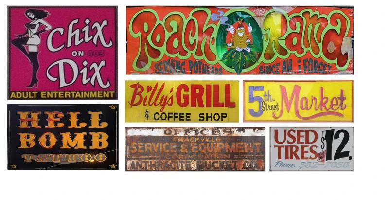 Pre-weathered waterslide decal signs are made using photos of real signs. Easily applied to structures and sign frames. Cut to fit with a decal scissors or hobby knife and apply using the manufacturer’s instructions. Decals are printed on a white decal base and must be trimmed to size.